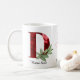 Add a touch of botanical romance to your morning routine with this custom Initial "D" Coffee Mug. Featuring a bold, serif letter "D" filled with a rich red heart pattern and accented with delicate watercolor green leaves, this mug blends classic typography with a modern romantic aesthetic.