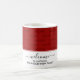 Elegante Dark Crimson Red WELCOME PARA NOSSA caneca de café convidada em CASA com texto personalizável para que você possa criar sua própria recepção e/ou adicionar seu nome, por exemplo. Bem-vindos à nossa casa de hóspedes, etc. Escrita elegante e sutil padrão dizendo WELCOME faz com que esta hospitalidade vermelha e branca faça uma caneca de café para receber convidados para sua casa, sua casa de hóspedes ou sua área de recepção de negócios. Disponível em outras cores de tendências e populares. Livro de hóspedes e outros presentes disponíveis. Escolha entre uma ampla seleção de presentes de boas-vindas e hospitalidade projetados por Designs Bereanos.