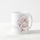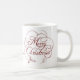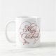 Esta elegante caneca de café de Natal apresenta uma bela chamada mensagem de "Feliz Natal" rodeada de espirais decorativas. Um sorvete de sagrada com bagas adiciona um toque festivo.