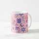 Um padrão de imagens temáticas de bruxas em rosa e roxo
