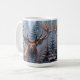 Uma magnífica alce de touro em pé na floresta, olhando sobre as mudas de pinheiros