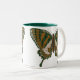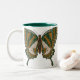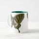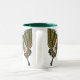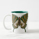 Ochre, preto, branco e pontos verdes criam padrões semelhantes a ondas e acentuam as manchas nesta borboleta raquidiana, inspirada pela arte pontual tradicional da população aborígene da Austrália. Estão disponíveis outras cores e estilos de caneca, incluindo canecas de viagem e canecas de cerveja.
