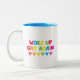 Acordou Gay de novo caneca de café colorida com texto brilhante e coordenação de gráficos cardíacos. Uma bela caneca para começar sua manhã com orgulho.