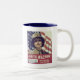 Imagem poster de recrutamento patriótica para o Exército de Mulheres durante a Segunda Guerra Mundial. Mulher de uniforme em frente à bandeira dos Estados Unidos.