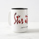 Agite-O. O texto personalizado vermelho escuro vai adicionar um entusiasmo ao seu copo matinal!