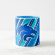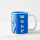 Fundo geométrico-linear em blues, aquas e turquesa. Cabeça de lobo