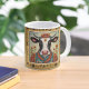 Crie um espaço único com esta "FloralCow Folk Art Coffee Mug"! Um boi adorável com girassóis! Um legal design improvisado por IA feito apenas para você em cima na montanha!