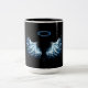 Caneca De Café Em Dois Tons Asas Anjos Azuis Brilhantes em fundo preto
