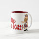 Um companheiro escocês engraçado com barba está vestindo uma equipe, Kilt e Sporran e tem texto dizendo... Quilt para cima