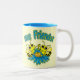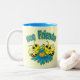 Bumbles bonitos em uma flor azul bonito com texto de BEE AMIGOS.