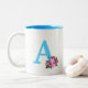 Caneca De Café Em Dois Tons Belo monograma turquesa com flores de maçã