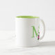 Caneca De Café Em Dois Tons Belo monograma verde com flores de maçã