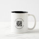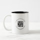Boost your brand with this black and white two-tone mug featuring a custom QR code and business logo. Perfect for corporate promotions, small business marketing, and client giveaways. Modern and professional design makes it ideal for office use, events, and easy website sharing through quick QR scanning.