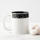 Caneca de café mostrada em branco, com uma impressão de bolinhas branca e preta na esteira. Personalize este item e escolha outro estilo de imagem ou comprar como está.
