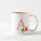 Bonito monograma rosa com flor em Mug branco.