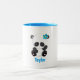Esta caneca de café é para os amantes do panda. Uma caneca de dois tons, que apresenta um dentro azul com fundo branco no lado de fora. Frente e centro é um urso panda preto e branco vestindo uma flor azul em seu cabelo acima do ouvido direito. A flor azul combina com o azul no dentro da caneca. Embaixo do panda está um lugar para personalizar seu nome em azul. Você pode escolher uma fonte de cor diferente se escolher e até mesmo uma fonte totalmente nova.
