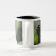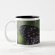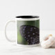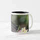 Caneca De Café Em Dois Tons Borboleta preta e azul na flor