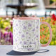 Brigue suas manhãs com nossa charmosa caneca floral de café, perfeita para trazer um toque da natureza para sua rotina diária. Esta maravilhosa caneca apresenta um padrão caprichoso de flores desenhadas à mão em tons macios e pastéis que evocam a beleza de um primavera. A robusta construção cerâmica garante a durabilidade, enquanto a confortável pega e jante coloridas acrescentam um toque doce e feminino. Personalizada com um nome em um roteiro elegante, esta caneca faz um presente pensativo para um amigo, amado ou mesmo para você. Ideal para café, chá, ou sua bebida quente favorita, esta caneca segura 11 onças de pura felicidade. Lavadora de louça e micro-ondas segura, é tão prático quanto bonito. Aproveite cada gole de estilo com esta linda caneca floral.