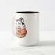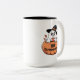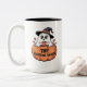 O Caffeine Ghost V2 Coffee Mug De Dois Tons. Dentro uma abóbora gigante, um fantasma dá um café debaixo do seu chapéu de bruxa torto. Boo-hoo? Mais como o brew-hoo! ele ri, o bigode de espuma brilhando. Feliz Halloween, amigos cafeeiros ficam assustados e acordados!