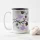 Aproveite seu café matinal com uma lata de café personalizada de púrpura. Mug design apresenta um par de pombinhos adornados com uma vinha floral e uma área que você pode personalizar com seu nome. Ofertas adicionais disponíveis com este design, bem como uma variedade de cores.