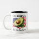 Keep it fresh and West Coast proud with this playful California Two-Tone Mug featuring "California" across the top, set against a waving United States flag. In the forefront, a perfectly cut avocado—seed and all—pays tasty tribute to the Golden State’s most famous green gem. It’s a sunny slice of California culture, blending laid-back vibes, healthy living, and a little foodie flair. Perfect for avocado lovers, brunch enthusiasts, and anyone who believes life’s better with a little guac on the side. Customizable for your city, zip code, neighborhood, or even your name! Design can be moved or duplicated to the opposite side. Popular shows and movies dedicated to California include Fast Times at Ridgemont High, Entourage, Point Break, The O.C., Beverly Hills 90210 and Gidget.
