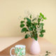 Padrão simples de folhas verdes claras e flores laranja traz um toque de primavera