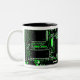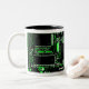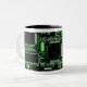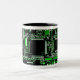 Design moderno com fecho de um conselho de circuito do computador em verde, preto e branco. Mug com um design personalizável para você personalizar com seu próprio texto, imagens e ideias. Criado com uma fotografia original e técnicas digitais por Jess Perry.