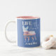 Comece as férias cedo com esta linda caneca de café da silhueta francesa que diz, "A vida é melhor na praia" em um design azul e rosa macio. Perfeito para qualquer mãe de cachorro ou amante de cachorro.