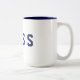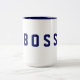 Esta caneca de café cerâmica é mostrada com um impressão de texto de BOSS. Tamanho 15 oz. Personalize este item ou comprar como está.