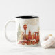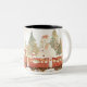 Celebrate the magical and festive holiday season with our personalized photo mug. Our vintage holiday design features a farm landscape of Christmas trees, this Christmas pattern features a farm Christmas scene with a farm, a red barn, children playing and throwing snowballs, Christmas trees and a red vintage truck
