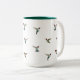Mug apresentando beija-flores de garganta rubi e uma citação de Ulisses.