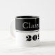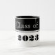 A classe de Formando da caneca de café é mostrada em design de cor branca e preta. Texto: Classe de 2023.
