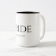 Caneca branca e negra clássica. Texto de bloco legante sobre fundo preto. As iniciais do noivo e noivo e a data do casamento podem ser removidas limpando o campo de texto.