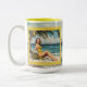 CLASSY SASSY E uma caneca de presente SMART-ASSY para aquele amigo perfeito. Uma jovem na praia em forma de selo. Uma cena de onda oceânica está ao fundo
