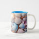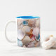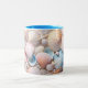 Coffee Mug de Seashell com dicas de cor azul, rosa e laranja.