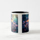 Uma pintura digital de alguns cogumelos mágicos em uma floresta de fantasia. Mug de dois tons, 11 oz