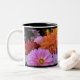 Brilhe o dia com essa caneca gloriosa, com uma coleção de flores de dália aquática em um design colorido de rosa, amarelo, branco e mauve.