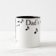 Esta caneca de café com duas tonalidades, incomum, apresenta a minha imagem de desenho animado de um pombo-taça vestindo um chapéu, assobiando uma melodia de feliz e carregando um guarda-chuva. A legenda diz "Pai's Mug" Um presente engraçado e útil.