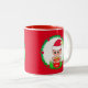 Um elfo de Natal bonito segurando uma caixa de presentes dentro uma coroa de pinheiro ornamentada com bolas vermelhas Mug. Aproveite a época mais maravilhosa e mágica do Ano!