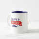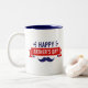 A caneca de café dia de os pais é mostrada em cores de dois tons. Azul branco e Marinho Personalize este item ou comprar como está. Imagem do stock