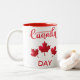 Três folhas de mapeamento vermelho com o texto "Dia do Canadá"