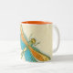 Uma caneca de café de duas tonalidades com libélula no exterior e laranja no dentro. Procure por designs de coordenação e acessórios.