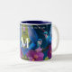 Caneca De Café Em Dois Tons Elegante Azul Roxo Funny Hummingbird Monograma em