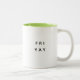 Obrigado deus é sexta-feira! Celebre o TGIF com este trocadilho divertido moderno: Trendy, caneca de café bonita dizendo "FRI YAY" na tipografia moderna na caneca de café de duas tonalidades. Adorando o interior verde-claro para isto mas está disponível em muito mais cores.