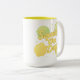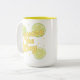 Uma caneca vibrante de duas cores com limões animados, fatias de limão fresco e a alegre frase motivacional Esprema o Dia. A arte brilhante de citrinos e a paleta de cores ensolaradas adicionam energia e positividade às rotinas matinais, pausas no escritório e presentes atenciosos. Perfeita para mulheres que apreciam acessórios para bebidas ilustrados de forma lúdica, edificante e bela, com um estilo fresco e estival.
