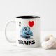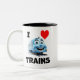 Eu adoro trens. Eu trago o coração. Com personagens pretos e o coração é vermelho. Se você é louco por trens!