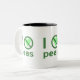 Odeio ervilhas. Design, em uma caneca de café com duas tonalidades, usa letras verdes, um coração verde e o sinal internacional "NÃO" para ler, "Odeio ervilhas". Mostra em três lados da caneca. Para aqueles que não os "coração", realmente não gostam deles, mas têm senso de humor (humor), adoram rir e ter seu osso engraçado marcado.