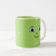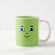 Caneca De Café Em Dois Tons Face verde feliz com texto e monograma de Vegan