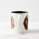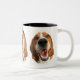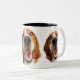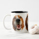 Esta caneca alegre mostra o rosto sorridente de Pêssego o cão caçador.
