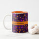Feliz jack de abóboras de lanterna e o colorido fundo de haalloween nesta caneca de dois tons: "Feliz Halloween" em ambos os lados e o nome na frente. Altere facilmente o nome usando o Modelo fornecido. Escolha entre 10 cores para alterar a dentro. Faz um presente perfeito de outubro para a família ou amigo. Consulte "Sobre este produto" ao lado para obter mais informações.